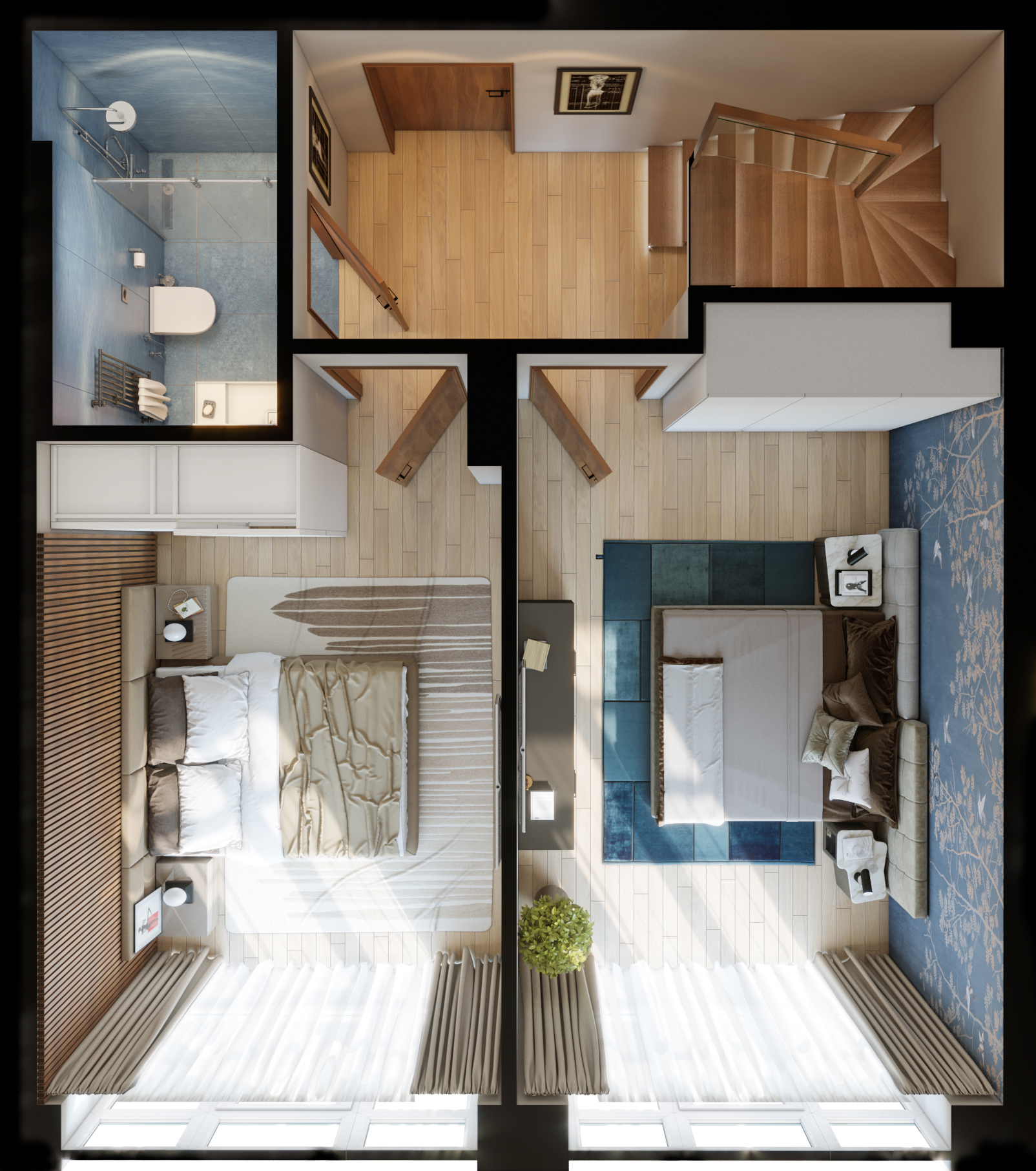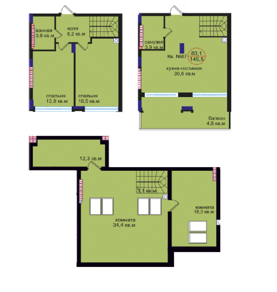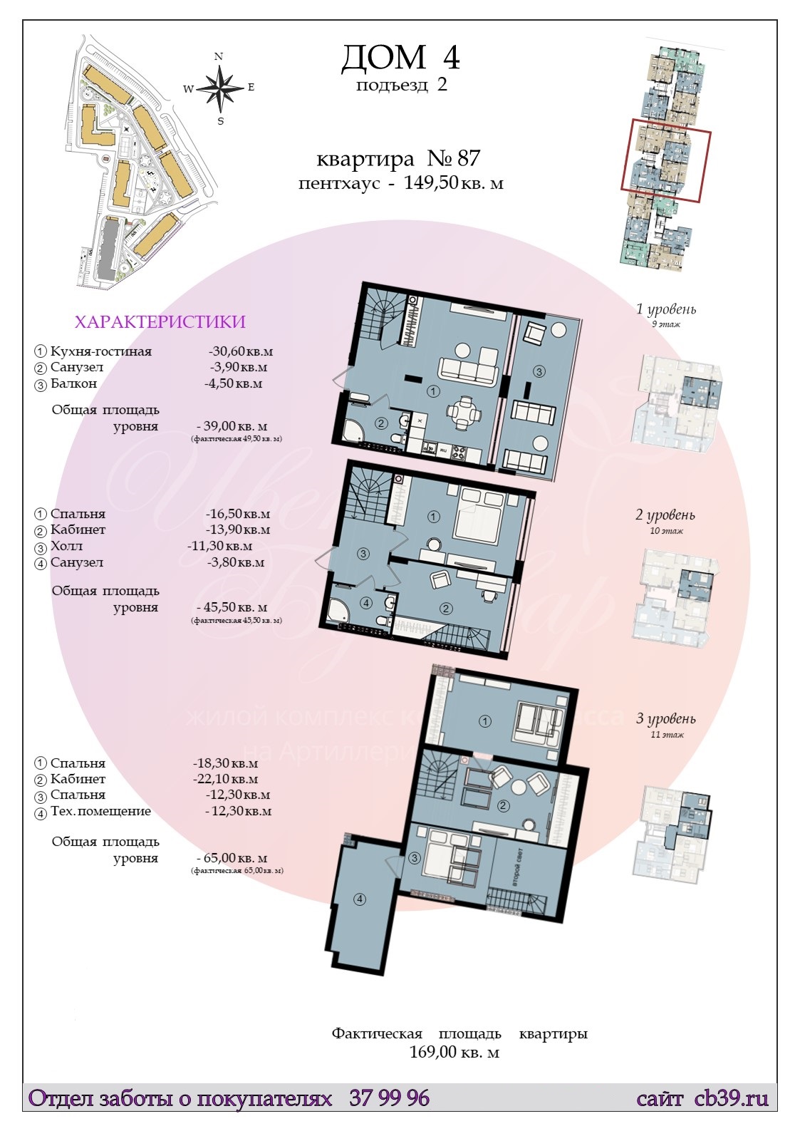 Мечтаете о собственном пентхаусе в Калининграде? Лучшее решение — именно эта роскошная квартира. Три уровня комфорта, 149,5 кв.м жилой площади. На первом уровне — объединенные гостиная и кухня 30,6 кв.м, балкон 13,5 кв.м, холл и санузел. Второй уровень — две спальни и просторная ванная комната, третий уровень – рабочий кабинет и комната отдыха — дополнительная площадь для релакса и встреч с друзьями, вместительная хозяйственная комната или гардеробная.