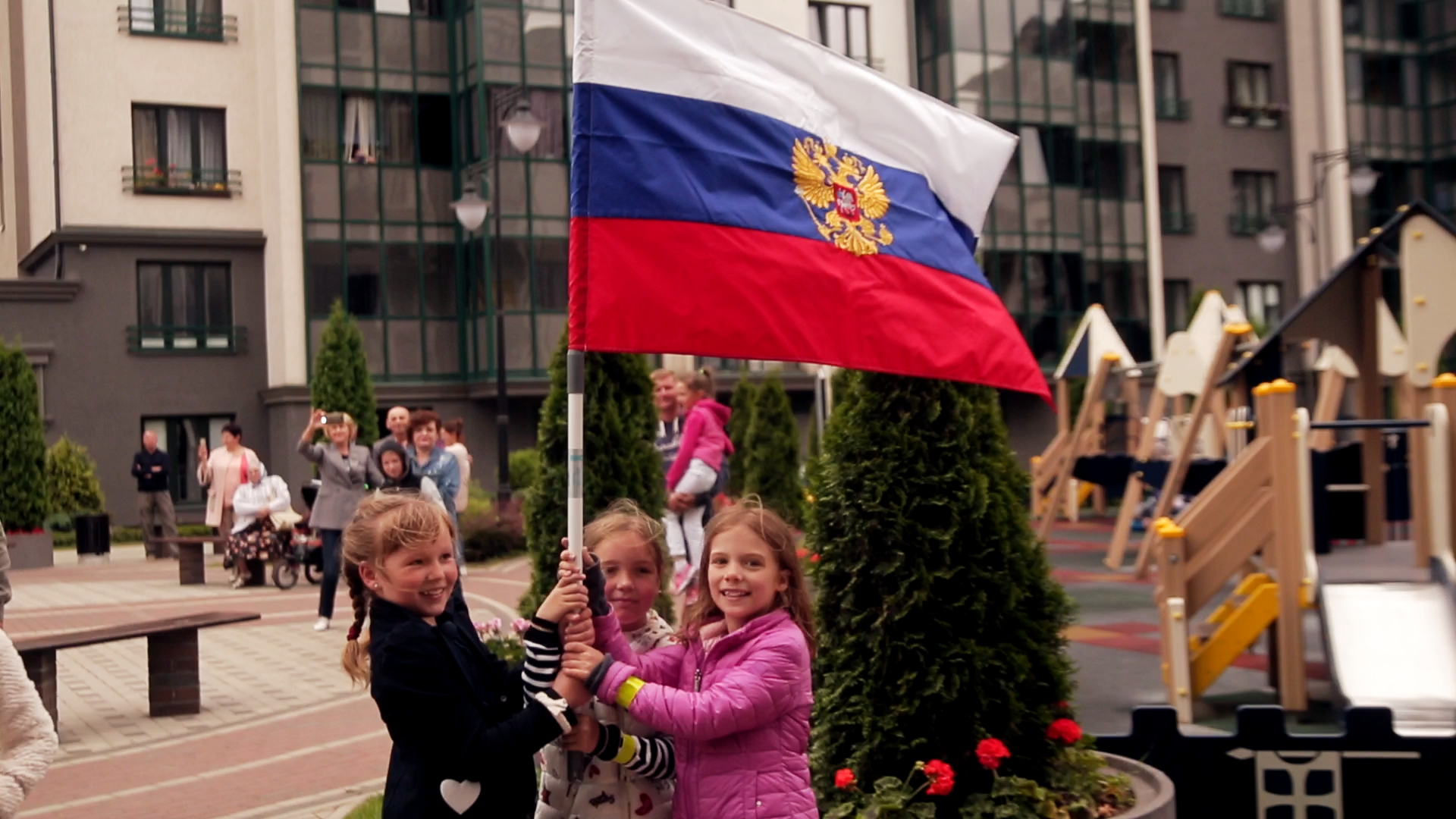 Над площадкой реял флаг России, куранты отбивали час за часом, а заводной ведущий не уставал в паузах подбрасывать «вопросы на засыпку»: сколько морей омывают Россию, сколько в нашей стране миллионов рек и озер, какую часть века пришлось бы потратить на то, чтобы хотя бы по минуте провести у каждого шедевра из собрания Эрмитажа... И, как ни странно, ответы выкрикивала не одна детвора, — так что паузы вполне смахивали на турнир умников клуба «Что, где, когда».