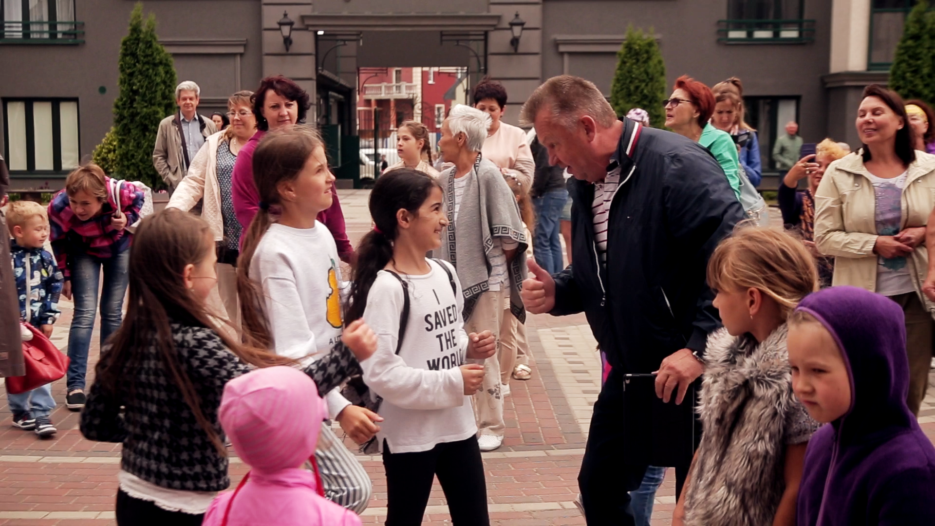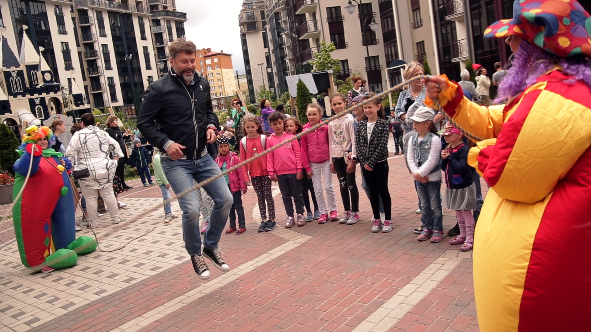 Веселье в это день лилось рекой под живое, а не «фанерное» сопровождение: ансамбль «Кураж» заполнял пространство густой — двадцатилетней выдержки — музыкой: незабвенные хиты 60-х, 70-х и 80-х («Если ты не бывал/в нашем городе светлом», «А я иду тебе навстречу/А я несу тебе цветы», «Там за туманами..», — два часа почти беспрерывного звучания, — всего не перечислишь). Музыканты и сами получали удовольствие — от великолепной акустики, комфортного окружения, чистого воздуха и, конечно же, от сердечности жителей. И так как играли они и пели не только голосом, но и сердцем, то старые мелодии пьянили, разогревали погоду и кровь, а благодарный «партер» расчувствовался, растанцевался, распелся. Кто не вышел на площадку — высыпал на балконы и террасы, точно так же припевая и пританцовывая, как и те, что веселились внизу. Танцевали бабушки и девушки, дедушки и мужчины в расцвете сил, с пропеллерами и без, в домашних тапочках и на шпильках. Вспоминали забытые шейки и твисты, русское диско и тот неповторимый стиль танцплощадок страны далекого пионерского детства и комсомольской юности. И юная поросль прониклась этим звучанием, что радовало старшее поколения.