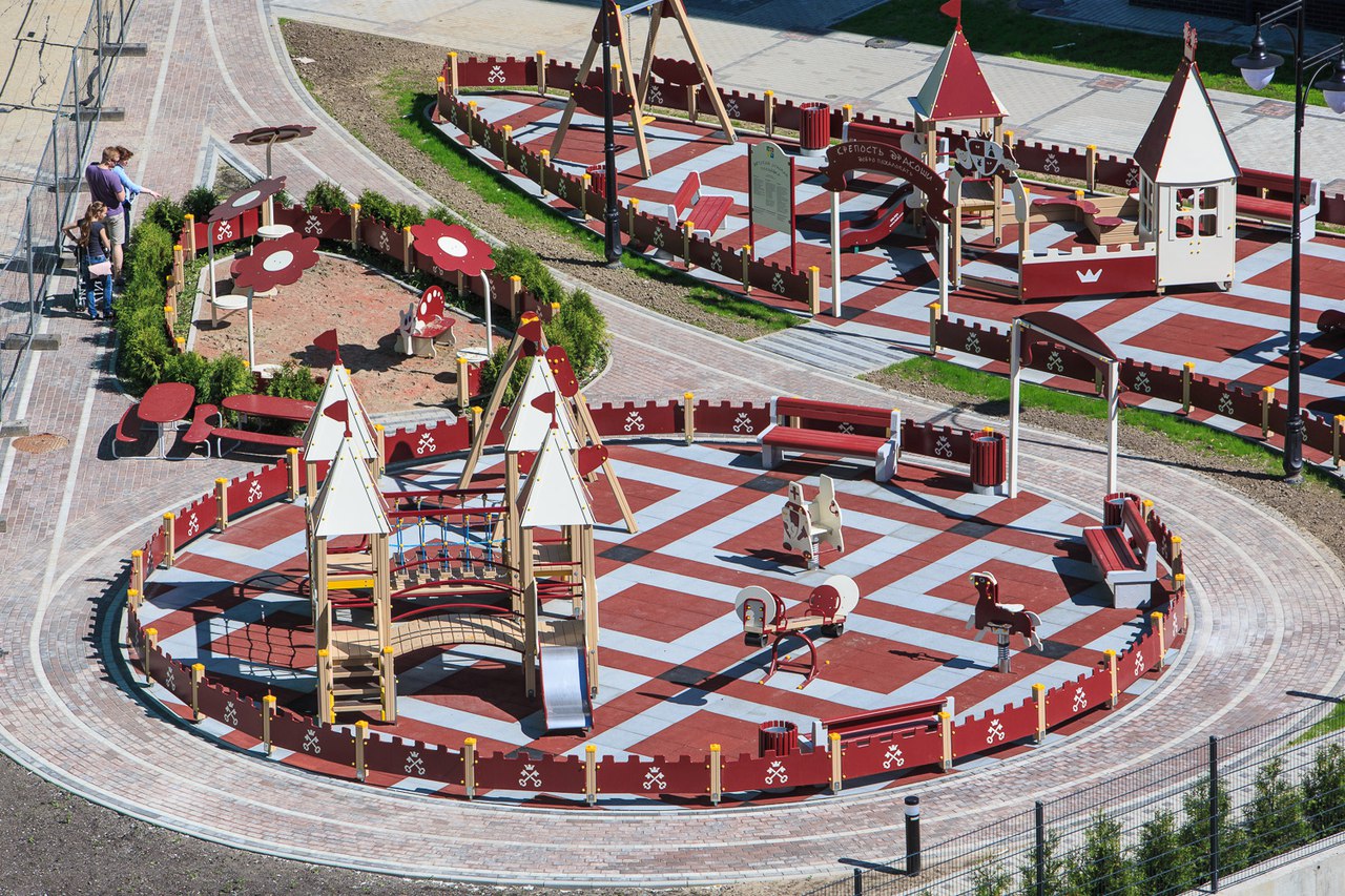 На территории ЖК разместился шикарный игровой комплекс для детей и их родителей — «Замок принцессы». Площадка прекрасно подойдет для семейного досуга, ролевых игр с малышами и детьми постарше. На всех детских площадках комплекса присутствует качественное антитравматичное покрытие. Если ваш ребенок устанет или захочет в туалет, домой бежать не придется! На первых этажах жилых домов имеется детская уборная с современной сантехникой, уголком личной гигиены (с мылом и одноразовыми полотенцами), а также пеленальным столиком и сушками. Во дворах и на детских площадках дома размещены камеры видеонаблюдения. Трансляция с камер присутствует в каждой квартире. Вы всегда сможете наблюдать за ребенком во дворе, не покидая пределов собственного жилья! Для детей постарше и взрослых во дворах ЖК установлены спортивные площадки для игры в мини-футбол, волейбол и баскетбол. Сейчас возводятся два теннисных корта, а также имеется множество уличных тренажеров. Вы сможете оставаться в форме всегда!