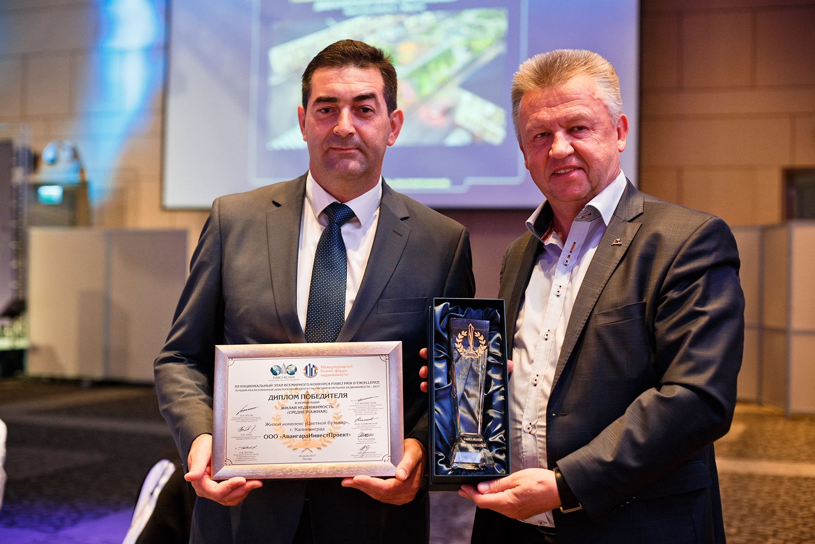 Победителем в конкурсе «Лучший реализованный девелоперский проект на российском рынке недвижимости» стал застройщик ЖК "Цветной бульвар «ООО «АвангардИнвестПроект». Получить золотую статуэтку «Оскар» — равнозначно статусной голливудской награде. Жилой комплекс, завоевавший признание, стал первой жемчужиной в ожерелье «Русской Европы». Компания уже работает над этим новым грандиозным проектом, воплощая его в жизнь на месте перехватывающей парковки к чемпионату мира 2018 года по футболу на площади 20,3 га.