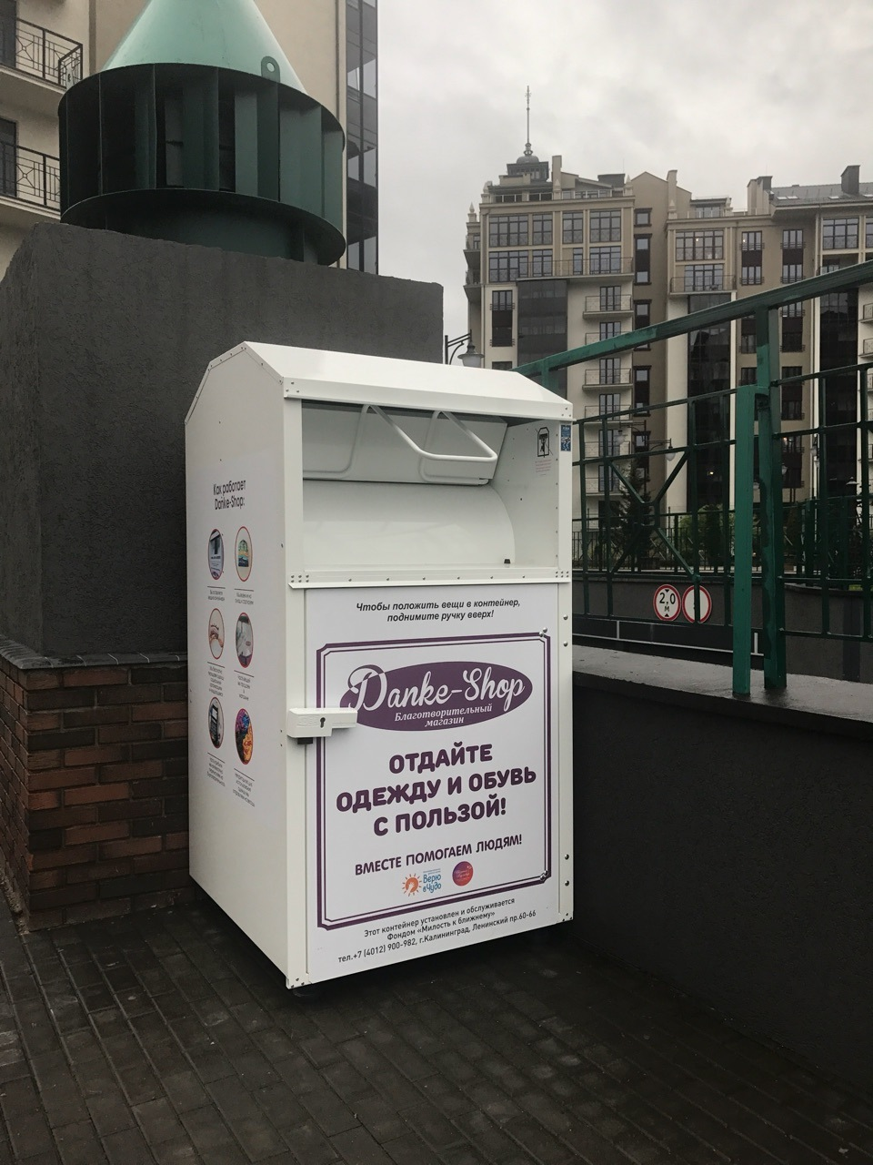 По инициативе застройщика и УК «Цветной Бульвар» во дворе нашего жилого комплекса установлен благотворительный контейнер Danke — shop. Чтобы сделать ненужные вещи нужными, просто положите вещи в киоск. Их распределят по благотворительным организациям, раздадут нуждающимся или продадут в магазине. Прибыль от продажи также пойдет на благотворительность. Вам обязательно скажут «спасибо»!